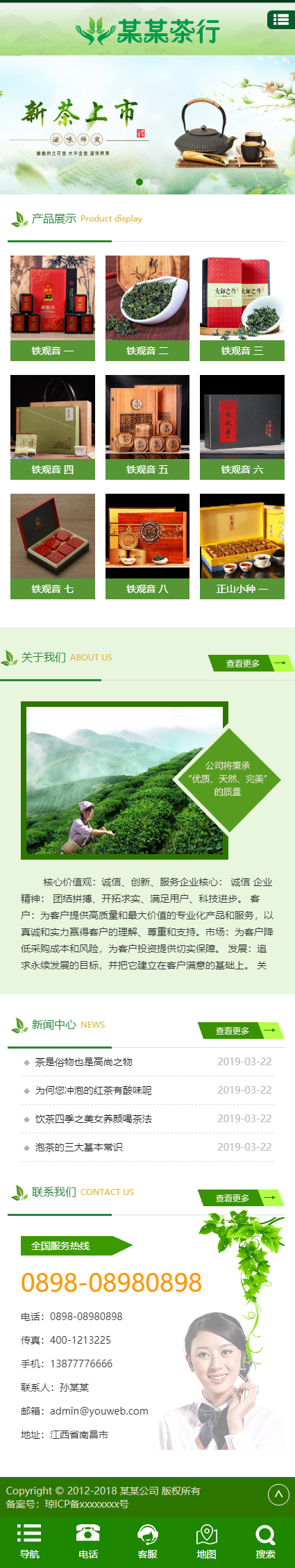 响应式绿色茶叶茶具网站模板